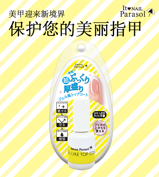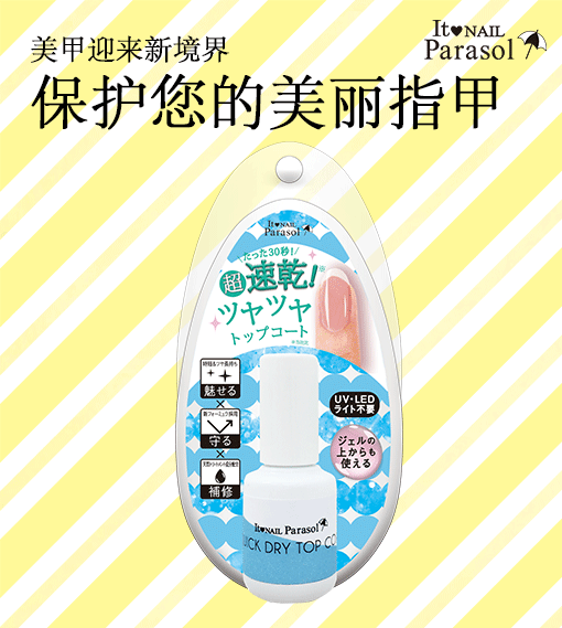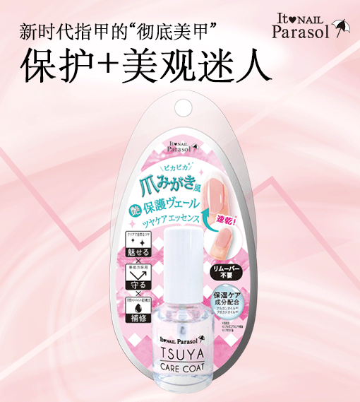 提高抗紫外线能力,添加珍贵的天然成分,强化修复效果。防止日晒造成的指甲干燥,通过美甲滋润成分,实现〈保护×修复〉两大功能。
