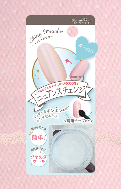Special shiny powder for nail art to change its texture of the base color. The exclusive tip included.